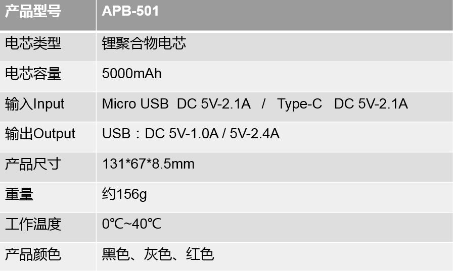 雙輸入:同時支持Micro USB和Type-C接口快充。